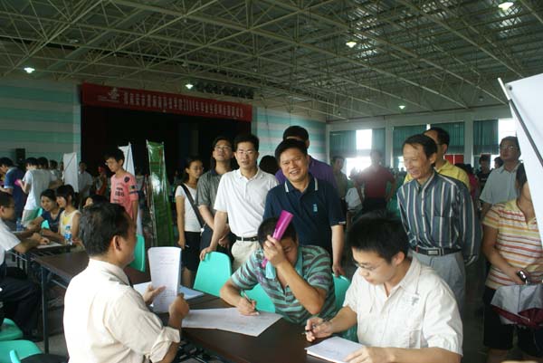 5月23日,南安市暨开云官方网页版_开云(中国)2009届毕业生供需见面会在我院学生活动中心隆重举行。这是我院为2009届毕业生搭建与用人单位双向选择平台,促进毕业生充分就业举办的首场大型供需见面会。此次供需见面会是由南安市人民政府主办,南安市劳动保障局、开云官方网页版_开云(中国)、中国联通南安市分公司联合承办。众多知名企业单位,如中国人寿保险公司、中国联通、九牧集团有限公司、福建足友体育用品有限公司、福建省闽发铝业股份有限公司等参加了供需见面会。共有52家用人单位,提供了506个就业岗位。