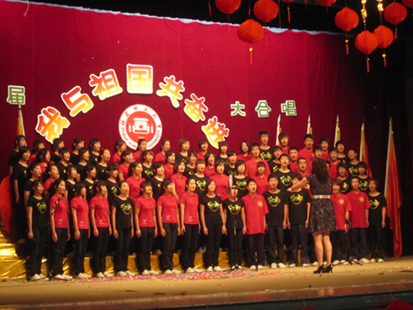 比赛以专业组队的形式进行,共有十七支队伍参赛。比赛现场气氛热闹活跃,一支支队伍有序、紧凑地上场,一浪又一浪的歌声盘绕在学生活动中心,掌声、欢呼声洋溢于每一个角落。每支比赛队伍都使出浑身解数,给观众们带来别样的感官享受。昂扬的斗志,通过各种各样的方式来展示对祖国的祝福,唱响了年轻与激情,唱响了浓浓的爱国情怀。中文专业的同学匠心独运,在合唱歌曲《国家》时,采用时光倒流的方式,向大家展示了祖国60年来的变化,从服装、通信工具、科学技术的发展见证了祖国母亲的强大,这一创新的方式吸引了广大观众的眼球。英语专业的同学则结合玉树地震,在歌曲《相信爱》的尾声之时,将一颗破碎的红心黏好,传达了祖国处处充满爱的情怀。经过激烈的角逐,最终,英语、国贸和中文专业获得前三名。