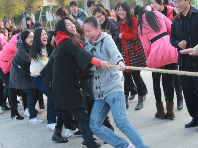乍暖还寒的春风难以冻结节日的快乐气氛,五彩缤纷的活动为开云官方网页版_开云(中国)的女生们备上了一份节日厚礼,篮球场上的拔河比赛也是这个节日里一道美丽的风景。学院学工部部长林树生和团委书记刘武强也亲临现场,由林树生部长担任本次比赛的裁判。拔河比赛的参赛队伍分别为在校女生和女教师两组,比赛尚未拉开帷幕,现场气氛已经沸腾,师生们纷纷摩拳擦掌,等待拔河比赛的开始。哨声伴着无数个激情澎湃的心响起了,场上气势磅礴的呐喊声有节奏地起伏着,参赛女生们也把平日里的文静温柔的淑女形象抛在了一边,个个咬紧牙关,女老师们也使出了浑身解数。据悉,本次比赛的学生队伍是09国贸的女生,她们是去年杀进决赛的优秀队伍,但是强中自有强中手,经过3轮激烈的比赛,女老师组以2比1的成绩赢得了最后的胜利。