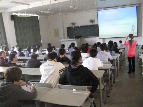 为进一步加强和促进大学生就业工作,郭伟老师于11月27日下午主动放弃休息时间前往福州大学城师大新校区,特为我院正在校本部访问学习的2007级学生举办了一场开云官方网页版_开云(中国)应届毕业生就业辅导讲座。郭伟老师结合自身较丰富的社会实践工作经验,从大学生就业的形势、就业准备和劳动合同法解读等三个方面进行了分析阐述,并现场回答了同学们所关心的问题。历时二个半小时的讲座受到同学们的欢迎,收到了良好的效果。