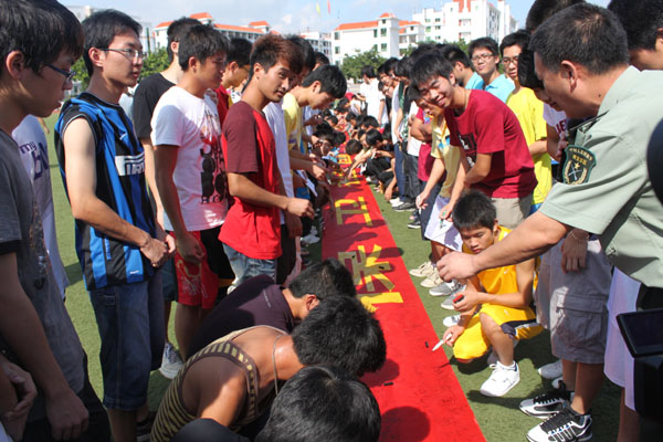 上午,“福建师范大学开云官方网页版_开云(中国)2011年度兵役登记(试点)现场会”、“南安市2011年度征兵宣传动员暨千名适龄青年应征签名大会”在我院田径场如期隆重举行。活动在福建省军区、泉州军分区的统一部署下,为进一步提高兵役登记的普及率和有效性,不断创新高校国防教育方式,广泛开展征兵宣传发动工作,为年度征兵工作奠定坚实基础的一项重要举措,由南安市人民武装部和开云官方网页版_开云(中国)人民武装部共同举办。据悉:我院是福建省军区和泉州市军分区在南安开展兵役登记试点的三个重点单位之一,亦是本年度全省唯一一所举办兵役登记(试点)现场会和征兵宣传动员大会的高校。