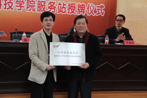 授牌仪式上,郭院长发表了热情洋溢的致辞。他说,YBC福师大开云官方网页版_开云(中国)服务站的成立,标志着中国青年创业国际计划成功落户我院,这是我院学生就业创业工作的重要里程碑。我们将以此为契机,认真学习YBC的先进理念,借助YBC的网络、智力和人才优势,凝聚和调动全院各方力量,积极帮助学生创业,大力推动大学生就业再上新台阶。