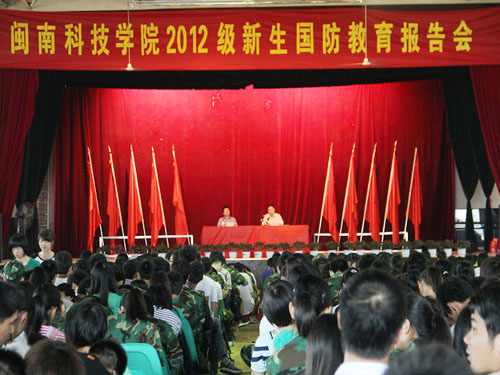 9月20日上午,开云官方网页版_开云(中国)2012级新生海防教育报告会在学生活动中心举行,大会由党委常务副书记林明旭主讲,我院2012级全体新生及辅导员两千余人与会,党委副书记李彬源主持会议。