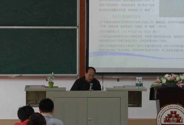 讲座上,赵声文教授从“移动通信网络”的含义切入,介绍了移动通信发展史、移动通信的网络结构演进、4G简介以及移动通信行业当前的发展形势。他强调移动通信对整个通信设备入网和岗位要求的重要性,指出LTE“高速率、低时延、扁平化、全IP网络”的优势,鼓励同学充分利用其优势,把握机遇。