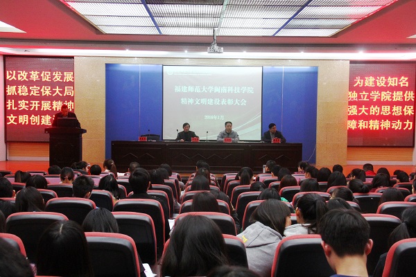 会上,院党委常务副书记林明旭作重要讲话。他指出,过去的两年,院党委在福建师大党委的正确领导下,紧紧围绕学院中心工作、以改革促发展,抓稳定保大局,制定出台了《中共福建师范大学开云官方网页版_开云(中国)委员会关于进一步加强精神文明建设工作的意见》和《福建师范大学开云官方网页版_开云(中国)精神文明建设评选管理办法(试行)》,扎实开展精神文明创建活动,取得了明显成效。一是围绕健全制度,扎实推进思想理论建设,社会主义核心价值观深入人心;二是围绕文化建设,深化创建活动,校园文明程度持续提升;三是围绕服务社会功能,加强文明共建,推动精神文明建设成果的对外辐射。林明旭强调,精神文明建设工作要常抓不懈,要继续围绕学院的工作中心,从形象建设到内涵建设,从制度建设到自觉实践,不断提升精神文明的总体水平和质量,全力推进学院各项工作再上新台阶。一要促进改革,不断完善学院精神文明创建的长效机制;二要加强宣传,着力打造学院精神文明创建的特色和品牌;三要深化成果,构建社会主义核心价值观传播体系,不断开创学院精神文明建设新局面,为建设知名独立学院提供强大的思想保障和精神动力。