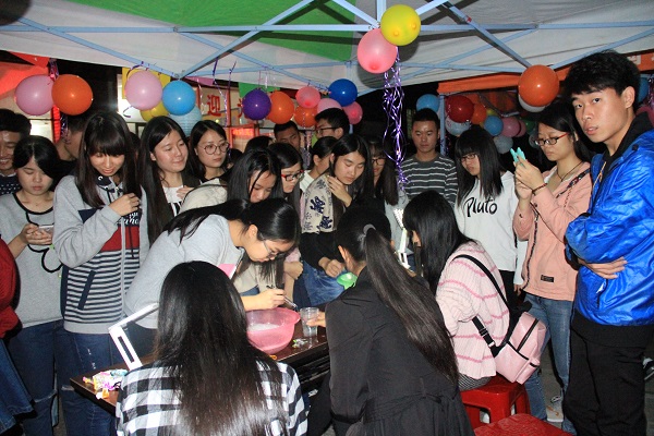 在爱心通道处,主办方为在校近千名勤工俭学的贫困生提供免费汤圆,热腾腾的汤圆暖人心扉,呈现出其乐融融的热闹景象。2013级通信工程专业的陈红同学说:“我的老家对冬至这个节日不是很重视,也没有汤圆。但是在学校,却能在节日里吃到热腾腾的汤圆,在寒夜给我们带来满满的正能量,真切地体会到了家的温馨和关切。”