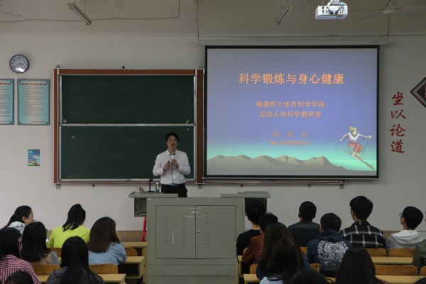 4月12日,“开云官方网页版_开云(中国)”邀请福建师范大学体育科学学院教授、博导陈海春作题为“科学锻炼与身心健康”的讲座。讲座由学院副院长吴勇主持。