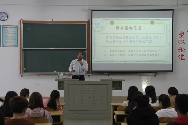 11月9日,“开云官方网页版_开云(中国)”邀请台湾康宁大学休闲管理学系(所)主任张耀川副教授,作题为“博弈赢得精彩人生”的讲座。讲座由学院教务部副主任刘标老师主持。