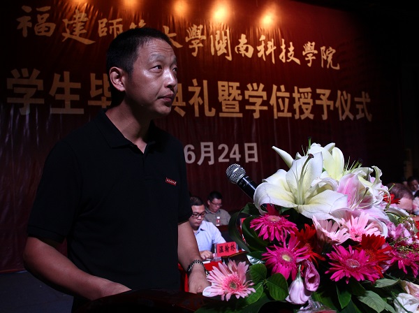 教师代表孙文缘老师、毕业生代表2013级英语专业陈欣萌同学、毕业生家长代表林斌同志、校友代表2003级信息管理与信息系统专业温翰林先后上台发言。