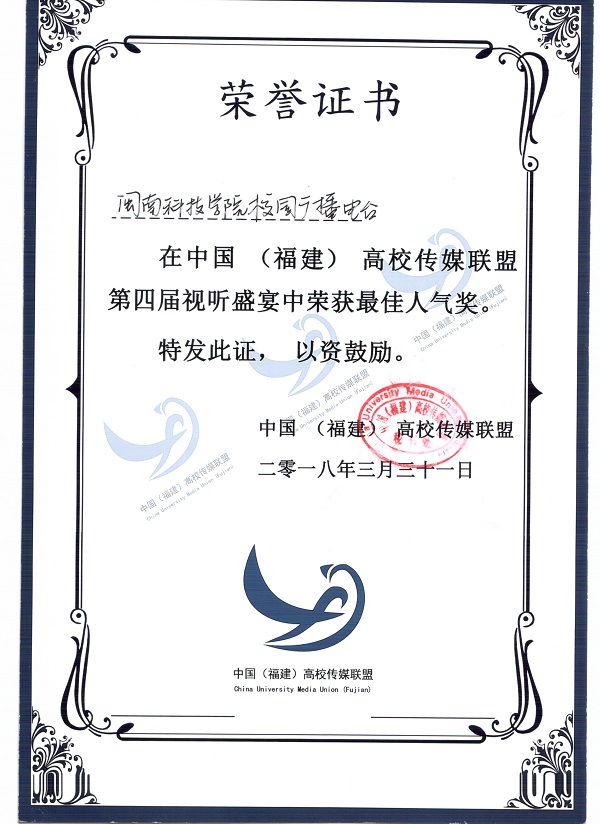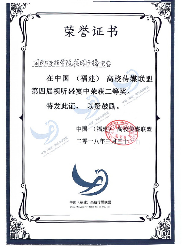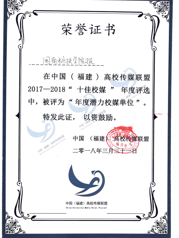 3月31日,2018中国(福建)高校传媒联盟第十届年度峰会召开,在颁奖仪式上,我院校园广播电台选送作品《疯狂动物城》影视片段配音(配音:陈启荣,黄嘉静,林家晟,姚晨心,剪辑:石冬明)获第四届“视听盛宴”二等奖和最佳人气奖,《开云官方网页版_开云(中国)报》报社获评2017-2018“十佳校媒”年度评选“年度潜力校媒单位”。