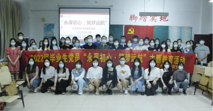 6月14日,艺术设计学院开展“永葆初心,筑梦远航”毕业班党员主题党日活动,通过共上一堂毕业党课、回顾一次入党心路、同过一次政治生日、赠送一页入党历程、齐唱一首经典红歌、签订一次廉洁承诺、参与一次志愿服务等“七个一”活动,激励全体毕业生党员坚定理想信念,在未来的学习工作中用自己的才智、胆略和毅力,奏响人生凯歌,乘风破浪,扬帆远航。